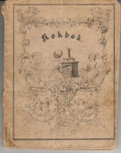 Kokbok för små flickor / utg. af en mormoder ; öfvers. från danskan. Götheborg : Gumpert, 1849.  67 s., 1 pl.  (planschen även som främre häftesomslag.)